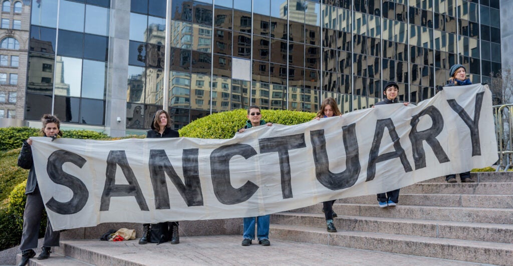 The left justifies sanctuary city laws with specious claims (compassionate, protection, abating fear, stopping Immigration and Customs Enforcement from targeting “innocent” people). It also falsely claims that this frees local law enforcement from being required to “do ICE’s job for it.”