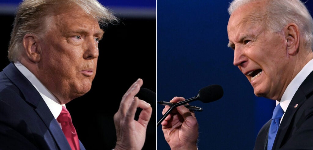 The first debate between Trump and Biden took place Sept. 29. The Commission on Presidential Debates canceled the originally scheduled second of three debates, set for Oct. 15, after Trump objected to a format in which the candidates would appear in separate “town hall” settings.