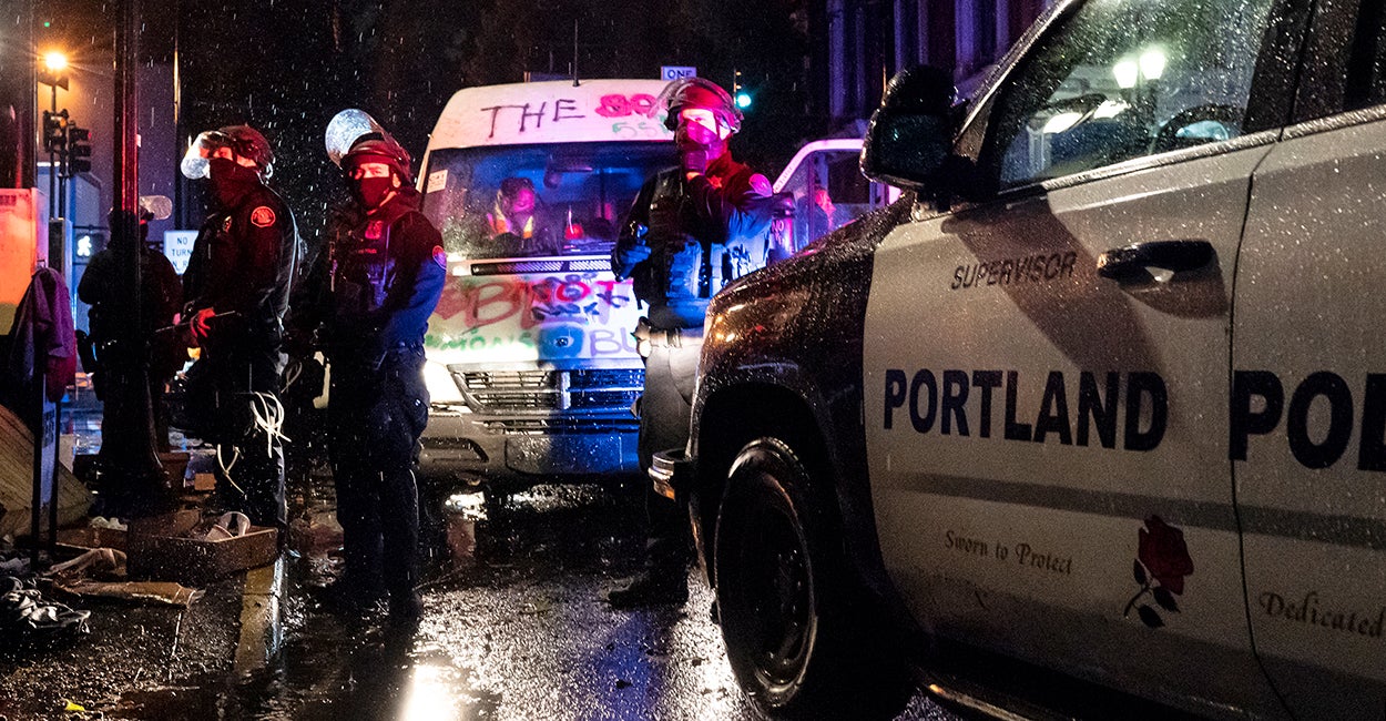 “This is the Portland Police Bureau,” officers announced via a loudspeaker, according to the department’s report. “To those marching on NE Martin Luther King Jr Blvd: This has been declared a riot. Members of this group have been observed damaging multiple businesses along NE Martin Luther King Jr. Blvd.”