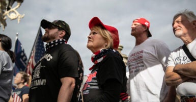 But the evidence appears thin. A leftist hit piece cited group members invoking the Second Amendment and issuing “vague calls to action” (like “fight” back against political maneuvering) as examples of “violent speech.”