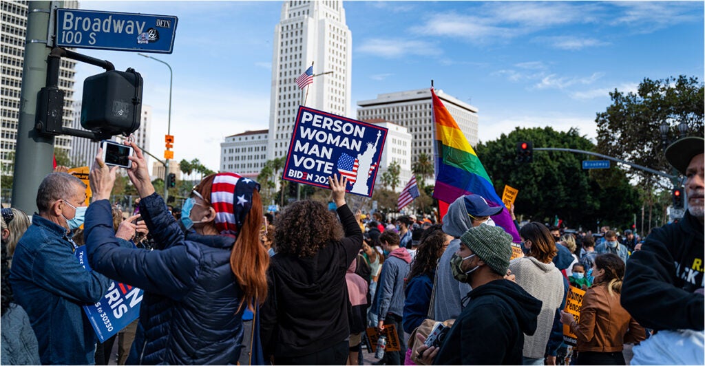 Thousands of Los Angeles residents gathered en masse to celebrate Joe Biden’s projection to win the presidency earlier in November, according to CBSLA. The rally followed months of nationwide racial equity protests and riots after George Floyd died in May.