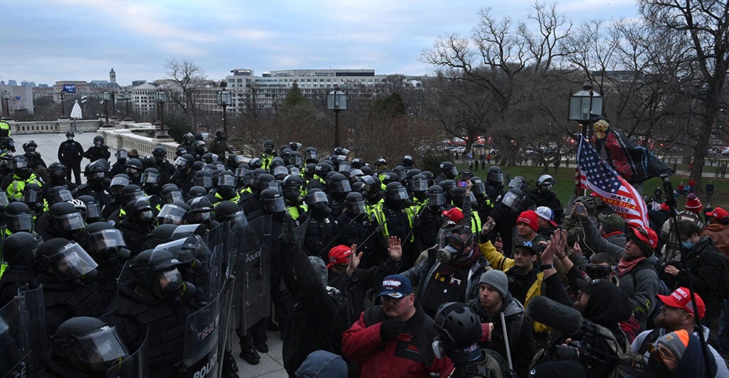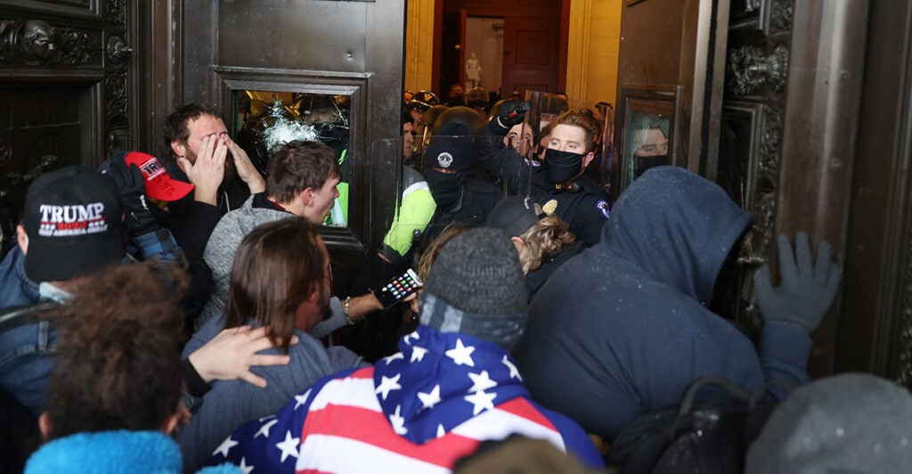 A mob attempts to enter the Capitol. (Photo: Tasos Katopodis/Getty Images)