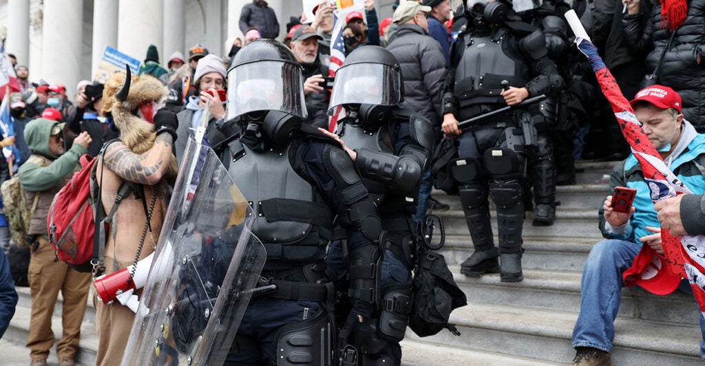 Protesters interact with Capitol Police inside the Capitol building. (Photo: Win McNamee/Getty Images)