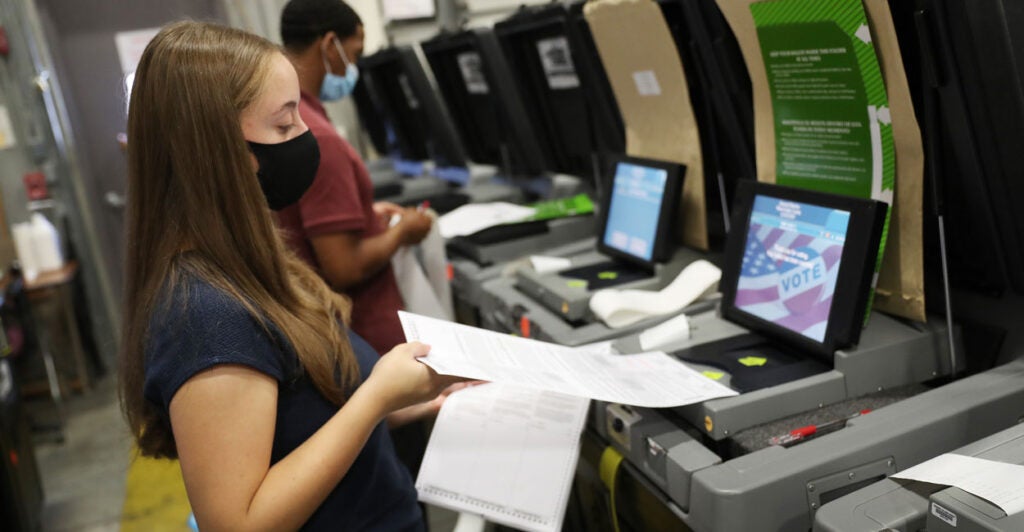 Marc Elias, a prominent Democratic election lawyer, made the claim about the voting machines in a court filing Feb. 1. Republicans were widely criticized following the presidential election for claiming that voting machines switched votes from Donald Trump to Joe Biden.