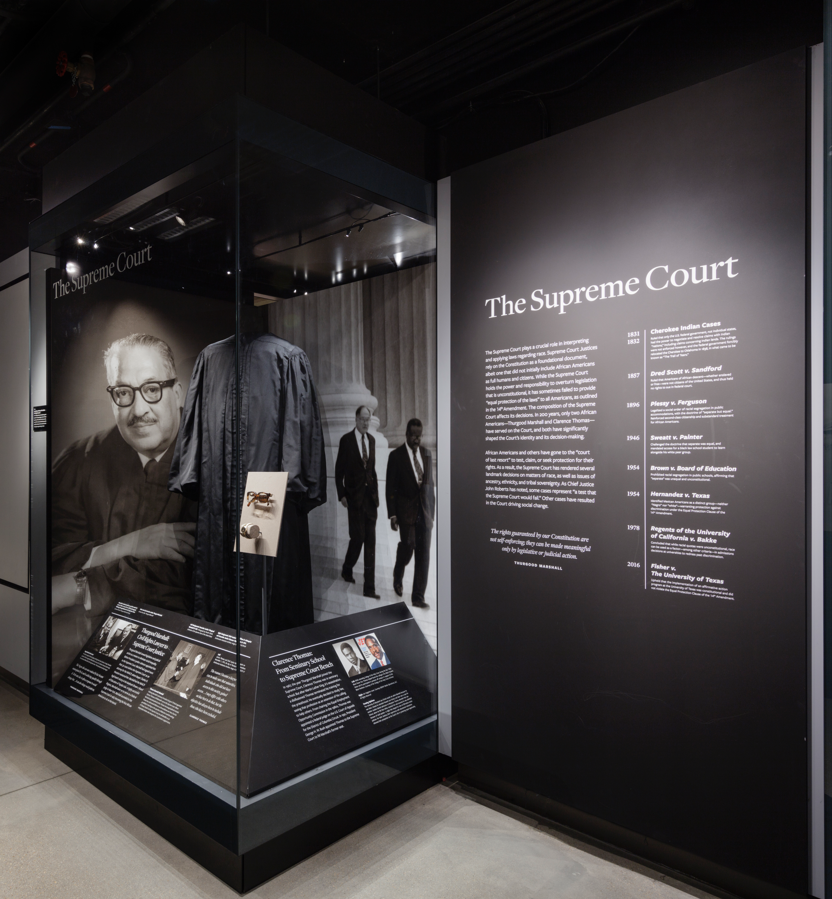 As one of only two African American Supreme Court Justices in the history of the United States, Justice Clarence Thomas is featured in the museum along with Thurgood Marshall. As part of the museum’s one-year anniversary in September 2017, the Museum installed a display about the Supreme Court within ‘Defending Freedom, Defining Freedom: The Era of Segregation,’ one of the Museum’s inaugural exhibitions.