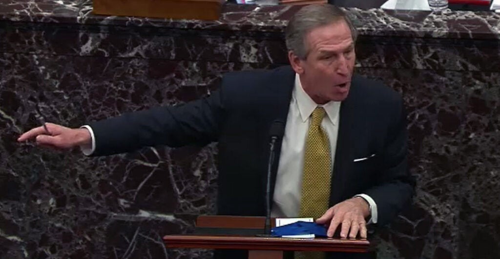 Van der Veen also argued that what Democrats’ impeachment managers claimed was incitement to insurrection was “ordinary political rhetoric.”