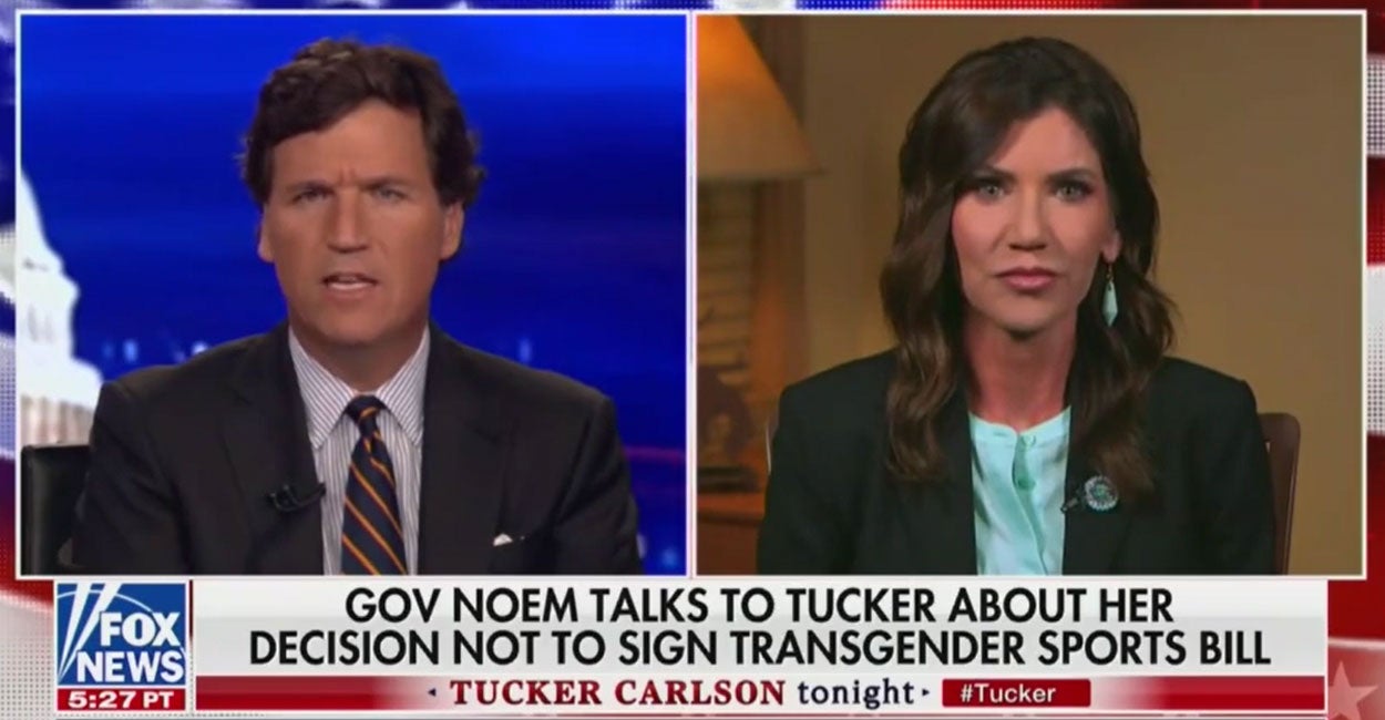 Tucker Carlson Calls Out Gov. Noem Over Bill Banning Biological Males From Women’s Sports