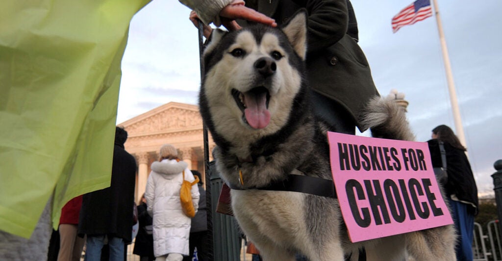 “Make sure your pupper knows it’s in the majority,” NARAL advises with a string of phony stats and polls. “Explain the connection between anti-choice extremism and white supremacy.” (Sure to be an interesting conversation, considering Fido’s vast, one-syllable vocabulary.)