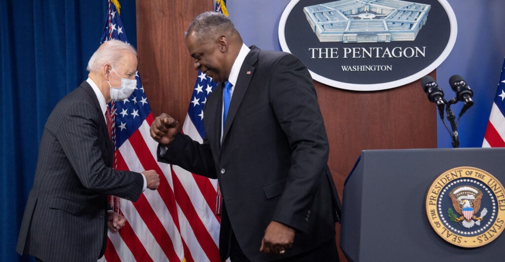 The meeting included a recorded message from Defense Secretary Lloyd Austin, a former four-star Army general who was appointed by President Joe Biden and took office Jan. 22.