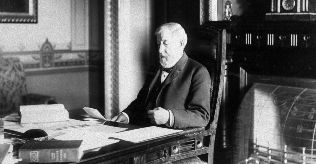 The amendment is named after a former speaker of the U.S. House of Representatives, James G. Blaine, R-Maine. Blaine—who later served in the Senate and as secretary of state and who narrowly lost the 1884 presidential election to Grover Cleveland—proposed an amendment to the U.S. Constitution in 1875 that would have prohibited the distribution of any government funds to “sectarian” schools.