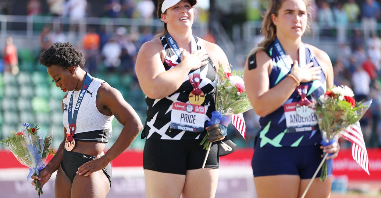 The anthem wasn’t played for her, or for the other competitors in the hammer throw; every day during the trials, a pre-scheduled anthem went out over the sound system.