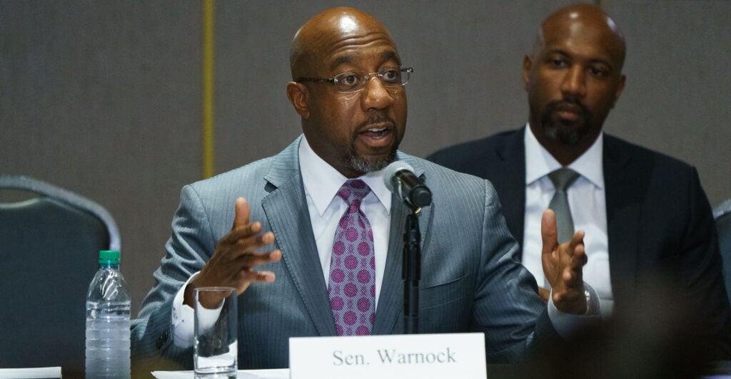 Warnock announced new legislation he is co-sponsoring with fellow Senate Democrats Jeff Merkley of Oregon, Mark Warner of Virginia, and Jon Ossoff of Georgia. Ossoff, like Warnock, took office in January after defeating a Republican incumbent in a special election.
