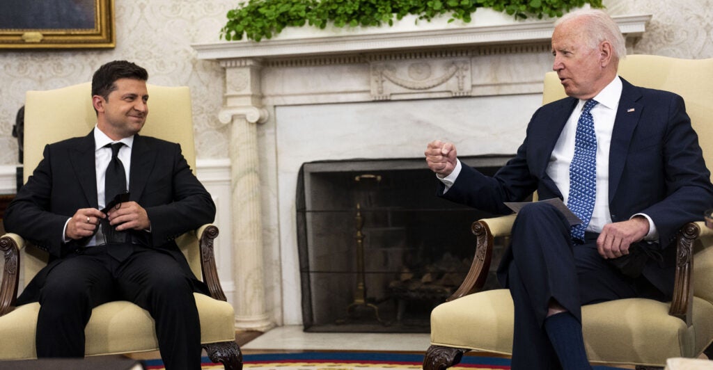 As Ukraine fends off aggression by Russian President Vladimir Putin, a senior administration official told reporters beforehand, Biden and Zelenskyy would discuss $60 million in U.S. security aid, including more Javelin anti-armor systems and other lethal and nonlethal defensive capabilities.