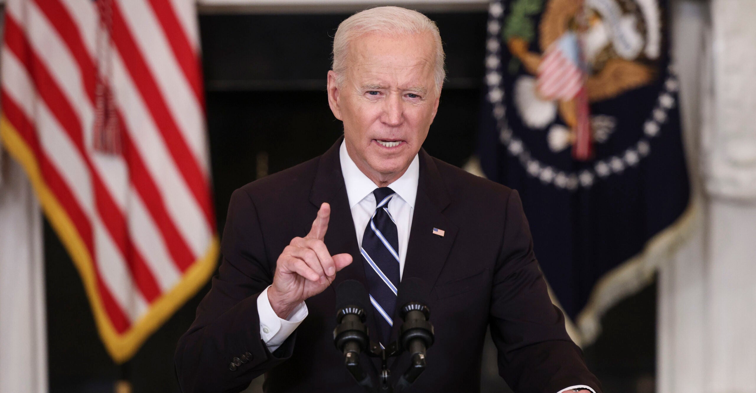 Speaking in the State Dining Room at the White House, Biden said the Department of Labor will require all employers that have 100 or more employees—“that together employ more than 80 million workers”—to make sure their workforces are vaccinated.