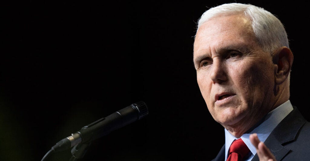 At a Wednesday night event celebrating the opening of Advancing American Freedom, an organization Pence founded, the former vice president held court with the hosts of the “Ruthless Podcast” on the rooftop of his organization’s new headquarters overlooking the U.S. Capitol. Pence discussed a range of topics for 45 minutes before a live audience.