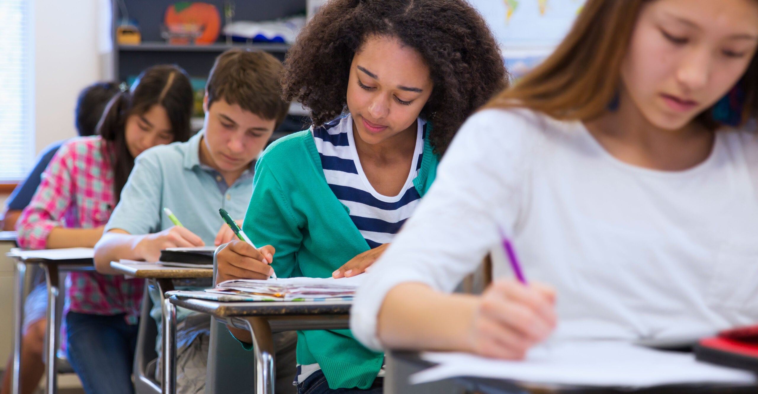Grades would also “not include behaviors, attitudes, tardiness to class, turning in on time/late, neatness, extra credit, etc.,” a slide in Pierre’s presentation read.