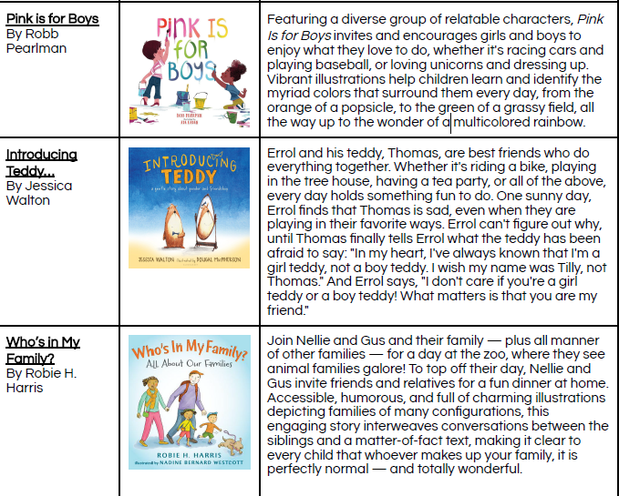 The list of books for kindergarten also includes titles that discuss racial issues, including “Let’s Talk About Race” by Julius Lester.