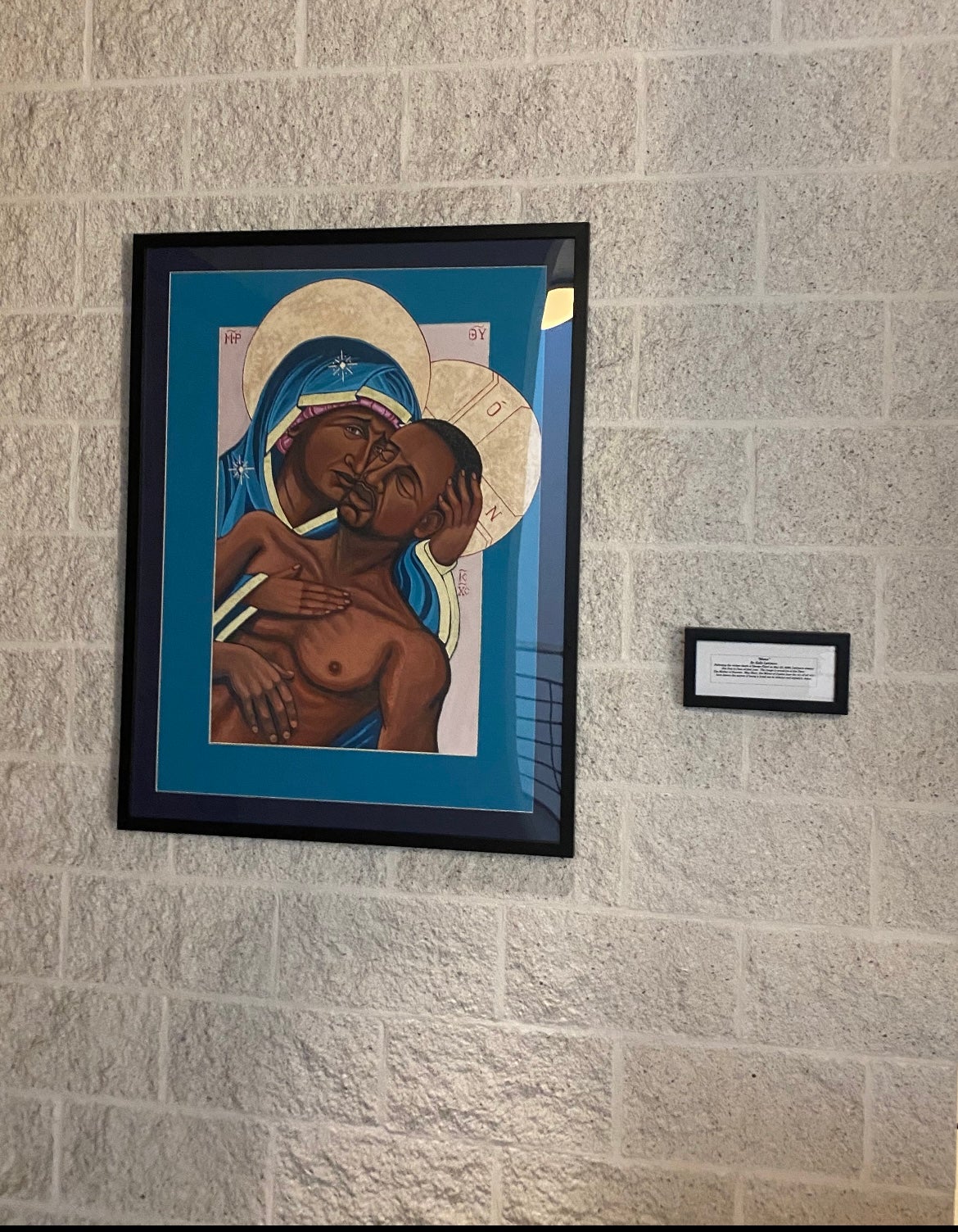The student called the painting “blasphemy against Mary for portraying her holding a sacrilegious depiction of George Floyd.”