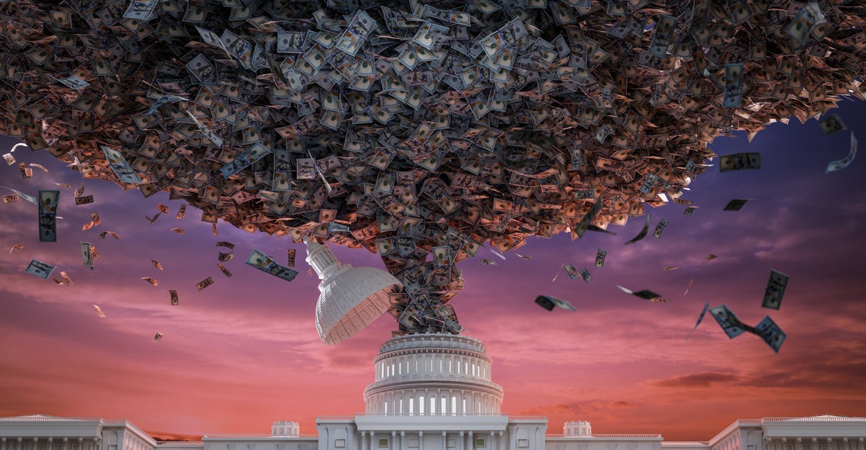 That means more dollars are created, sloshing around the economy, and dollars are more numerous than before although the size of the economy has not changed. That dilutes the value of money and causes prices to soar.