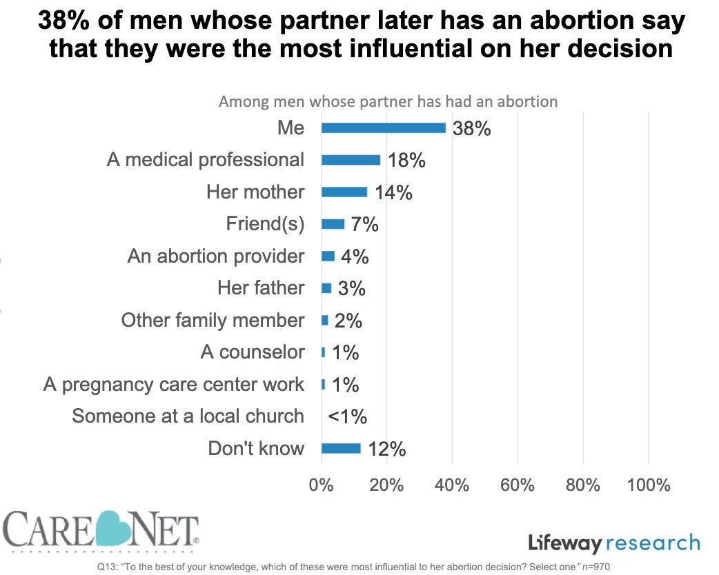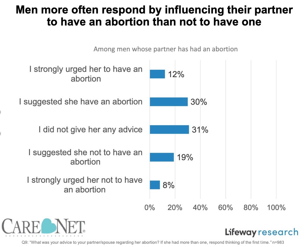 Men play a critical role in determining whether a woman chooses to have an abortion, according to a Care Net survey released last week.