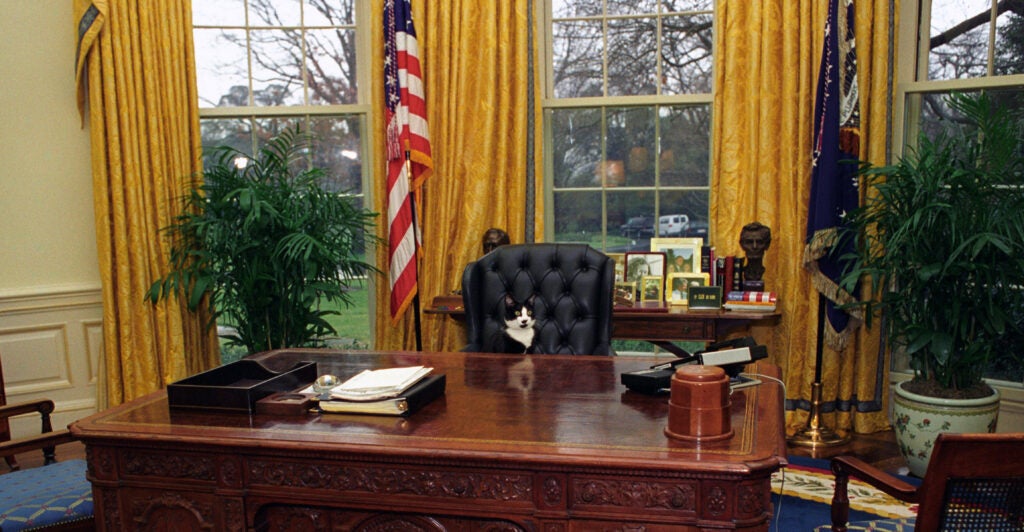 For example, there was Socks the cat, who came in with the Clintons in 1993. Then the Clintons added Buddy the dog at the end of 1997, weeks before the Monica Lewinsky scandal broke. Hillary Clinton came out with a children’s book in 1998 titled “Dear Socks, Dear Buddy: Kids’ Letters to the First Pets.” But when they left office in 2001, the Clintons took Buddy to New York, and Socks got left behind with Clinton aide Betty Currie.
