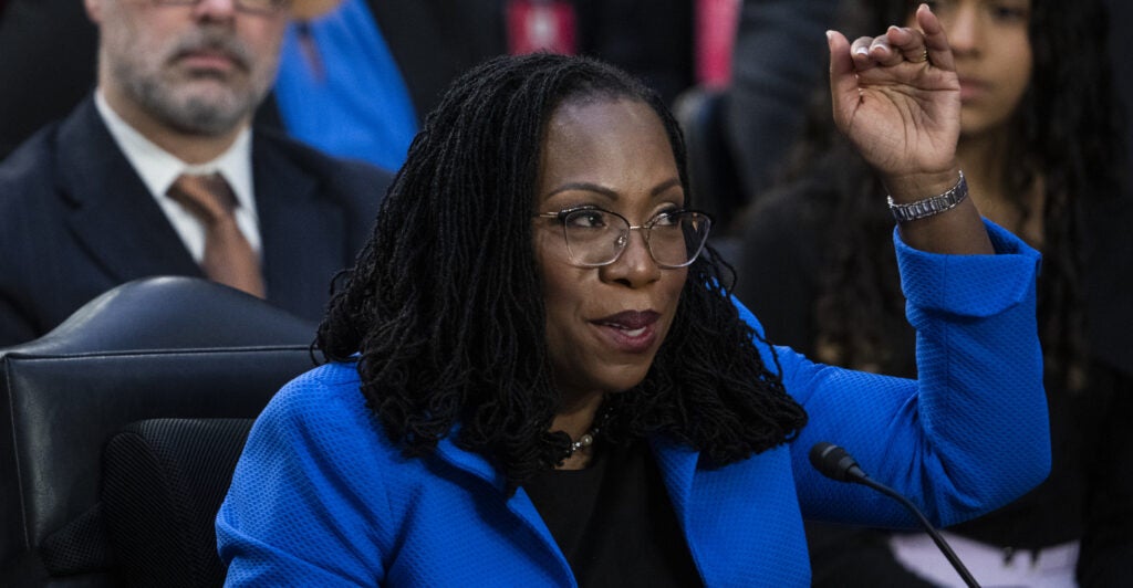 “I know that I’m a woman,” Jackson said. “I know that Sen. Blackburn is a woman, and the woman who I admire most in the world is in the room today, my mother.”