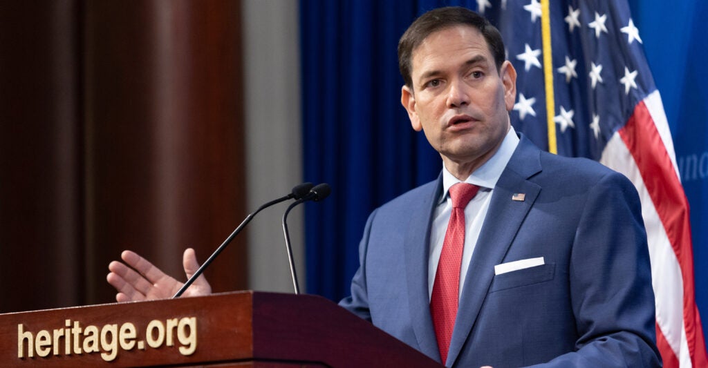 “It’s either going to be a story of how a rising authoritarian power replaced a free society as the world’s most powerful country and as a result, ushered in a new dark age of exploitation and conquest, utilitarianism, and all the worst aspects of human nature,” Rubio said Tuesday in an address at The Heritage Foundation.