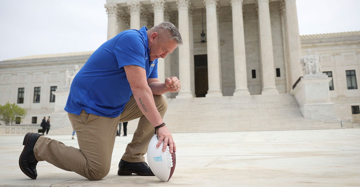 The story stretches back to 2008, when Kennedy, Bremerton High School’s assistant football coach, began a simple tradition of taking a knee at the 50-yard line after the games ended and offering a short prayer. Over time, football players began to voluntarily join Kennedy as he prayed.