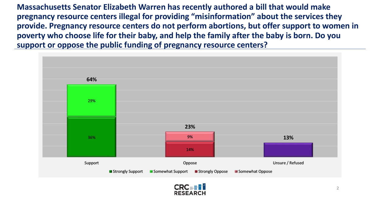 Only 64% of respondents were originally in favor of using public funds for maternity homes and pregnancy resource centers. However, after learning more about the services they offer, such as providing clothing, diapers, and other needs, support for these centers grew.