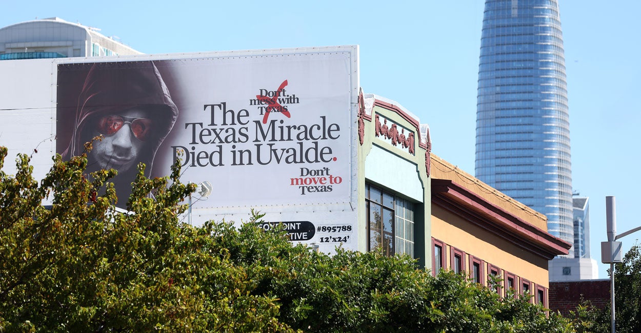 Understandably, some are upset with that turn of events, but the billboards put up in Los Angeles and San Francisco are a cheap shot. They warn Californians about mass public shootings in Texas, specifically pointing to the recent Uvalde school shooting. The billboards warn, “The Texas Miracle died in Uvalde.” They replace Texas’ slogan, “Don’t Mess With Texas,” with “Don’t Move to Texas.”