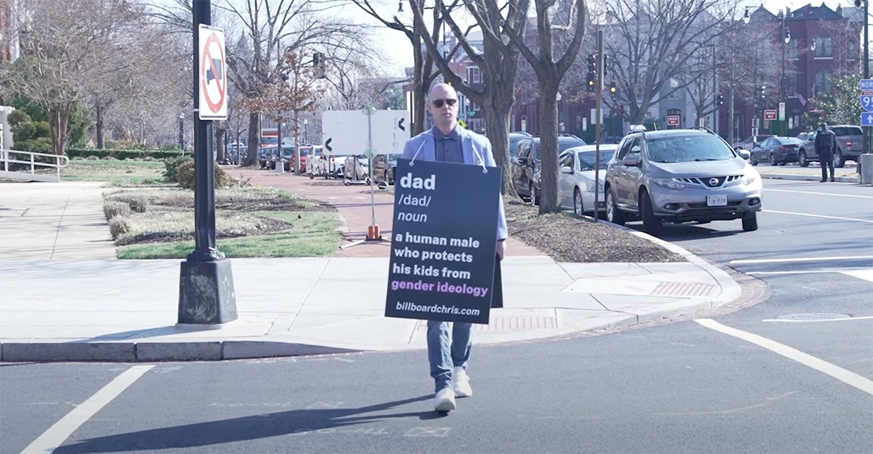The transgender movement is “a social contagion,” says Chris Elston, an activist known as “Billboard Chris.”