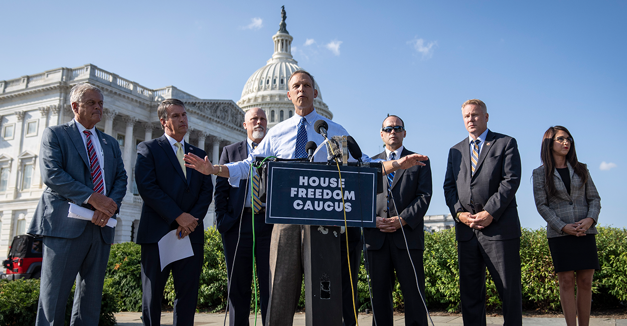 The leader of the House’s most conservative caucus is calling on party leadership to prevent “leftist Democrats” from getting “another bite” at tyranny as Congress prepares to vote on a short-term government spending bill before the fiscal year ends Sept. 30.