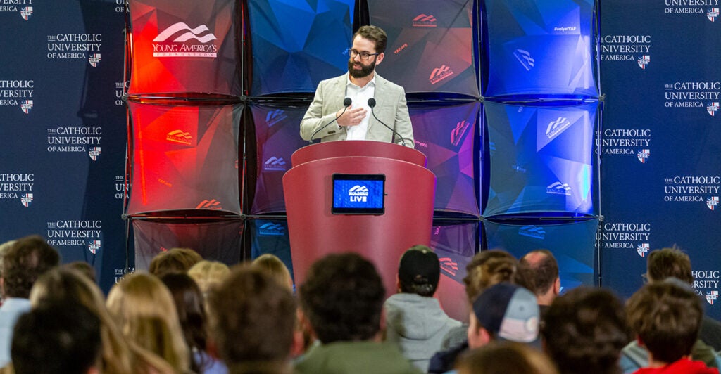 Despite efforts by a leftist group to prevent it from taking place, conservative commentator Matt Walsh, producer of a documentary film questioning the legitimacy of transgenderism, spoke Tuesday at the Catholic University of America.