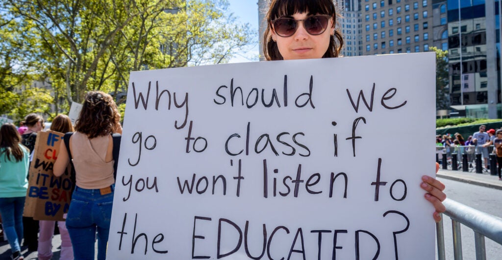 Glenn Branch, deputy director of the National Center for Science Education, said there are limits to what high schoolers can be expected to read and understand from complicated climate science reports. “But you do want them to realize that [climate change] is a real thing and know the causes and … that it’s a serious problem that will be disruptive to nature and society for centuries to come and that there are ways to adapt.”