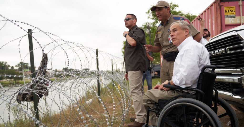 Abbott invoked the invasion clause of the Texas Constitution, allowing him to deploy National Guard and Texas Department of Public Safety personnel to turn illegal migrants back to Mexico, build a border wall, and designate the Mexican drug cartels as foreign terrorists.