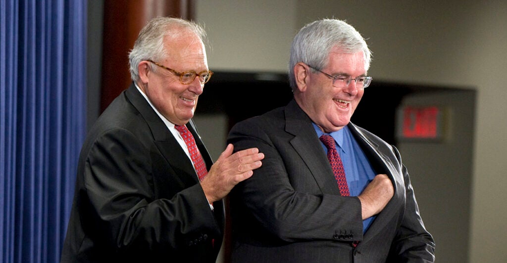 “I was frankly a little bit depressed” after the midterms, Feulner says, “and somebody said to me, ‘Well, Eddie, are we better off today than we were the day before the election?’ Well, yeah, we are. We’re not as better off as I wanted to be, but we are better off. So you got to look at the bright side and be that congenital optimist.”