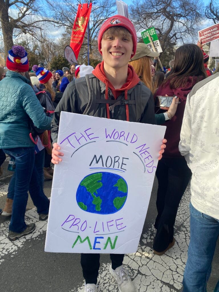 A young man holds a sign reading “The World Needs More Pro-Life Men” Jan. 20, 2023, in Washington, D.C. (Photo: Elizabeth Troutman/The Daily Signal)