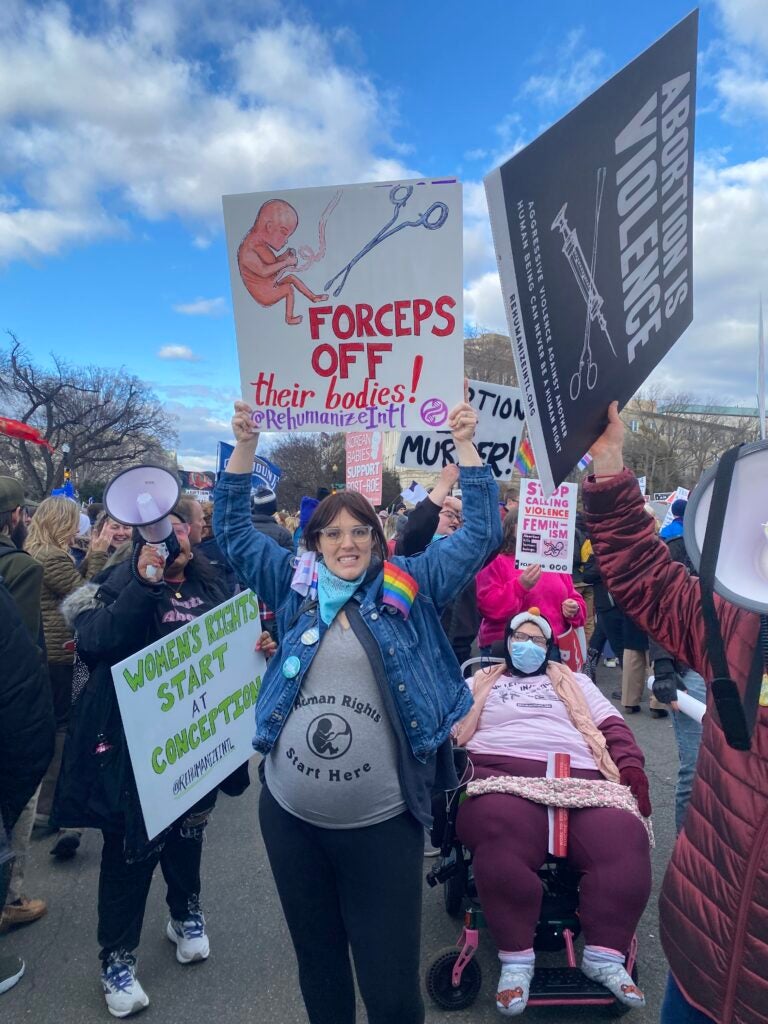 Women hold signs condemning abortion and quoting Dr. Seuss’ “Horton Hears a Who” Jan. 20, 2023, in Washington, D.C. (Photo: Lydia Emrich/The Heritage Foundation)