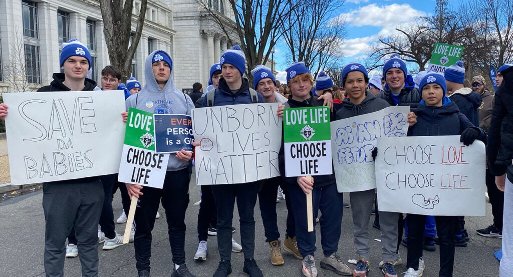 Students hold a sign reading “Make America Pro-Life Again” Jan. 20, 2023, in Washington, D.C. (Photo: Michael Ippolito/The Daily Signal)