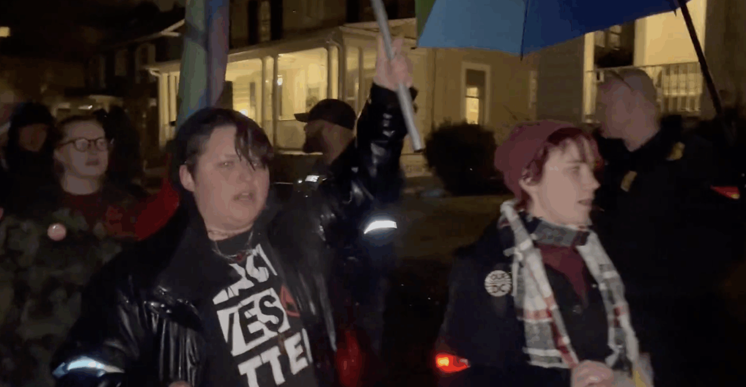 The protesters carried rainbow umbrellas decorated with pro-abortion slogans, singing and chanting as they marched, “cut his time short, a rapist should not rule the court,” “freedom of religion means freedom from yours,” and “no privacy for us, no peace for you.”
