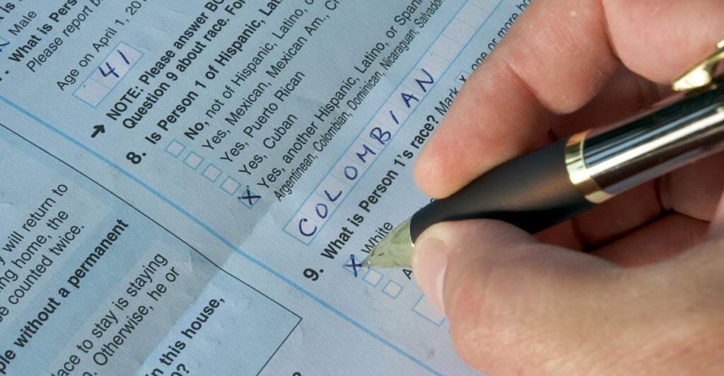 Currently, and since 1980, the constitutionally mandated decennial census asks two questions. The first is whether you’re Hispanic or non-Hispanic. The second one asks which race you are and gives you the choices of white, black, Native American, Asian American, or Pacific Islanders.
