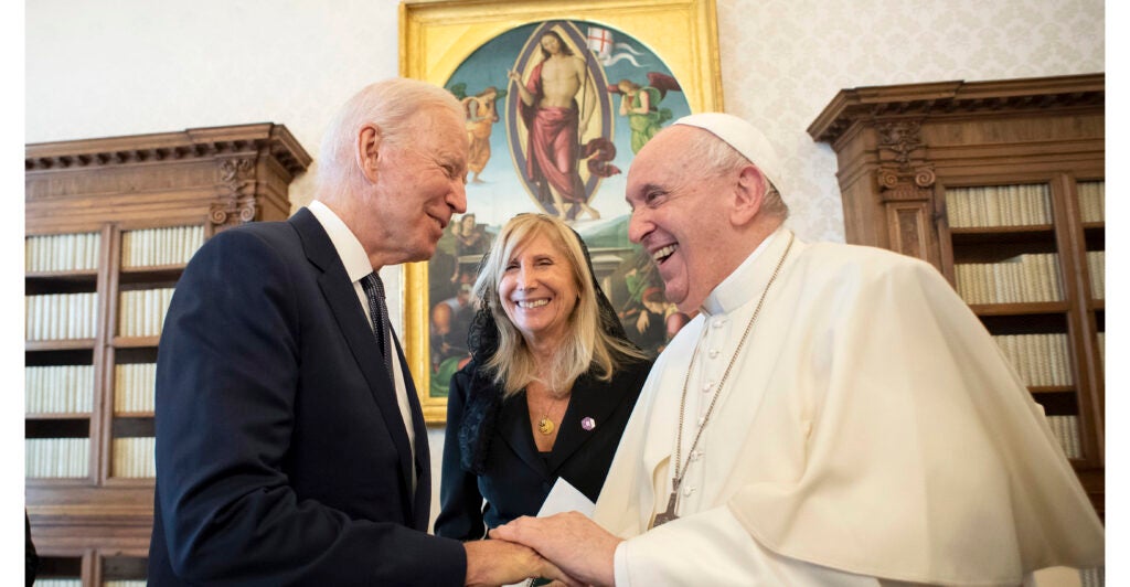 “No, they are not all doing that, and nor is the pope doing that,” Biden, a Catholic, responded.