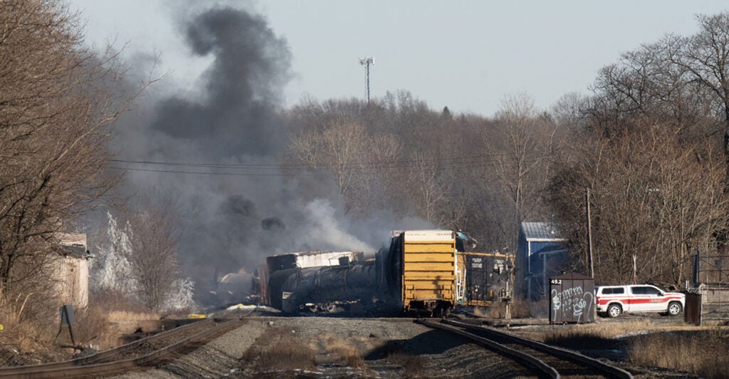 Approximately 50 rail cars derailed Feb. 3 near the town on the Pennsylvania border, creating a scene of utter devastation. On Feb. 6, five derailed tanker cars began to leak vinyl chloride, a highly toxic, carcinogenic, and flammable chemical used to manufacture plastics such as PVC piping.