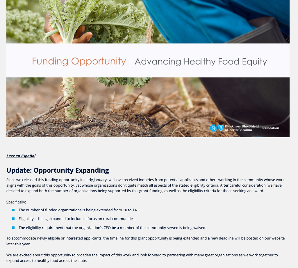 “Since we released this funding opportunity in early January, we have received inquiries from potential applicants and others working in the community whose work aligns with the goals of this opportunity, yet whose organizations don’t quite match all aspects of the stated eligibility criteria,” the update reads. “After careful consideration, we have decided to expand both the number of organizations being supported by this grant funding, as well as the eligibility criteria for those seeking an award.”