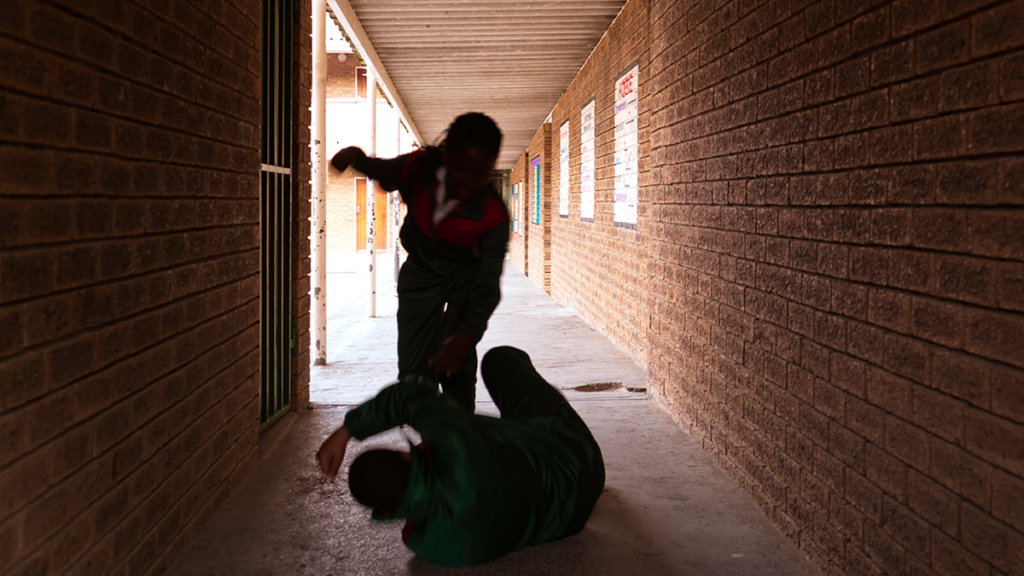 A student gets into a violent fight in the classroom—students’ safety is threatened, and the teacher struggles to break up the fight before calling the office. The office may (or may not) send an administrator, counselor, or other office-staff member to the classroom, where the fighting students are taken into the hallway or the office for a brief discussion about their actions.