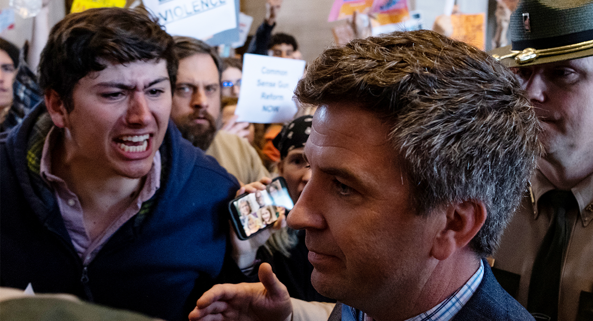Footage of what some might call an attempted insurrection shows protesters pushing state troopers, taking over the floor of the Tennessee General Assembly, and screaming through a bullhorn at state legislators.