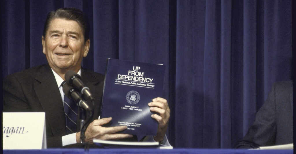 Work-based welfare systems are effective in reducing poverty. Before welfare reform in the 1990s, single-parent poverty had remained static for decades. Welfare reform replaced a welfare program without work requirements (Aid to Families with Dependent Children) with a program that partially required work (Temporary Assistance to Needy Families). As a result, poverty among single-parent families fell by two-thirds.