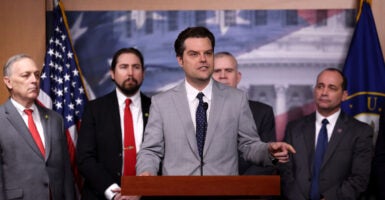 “It was important for House members to show Sen. Tuberville how many millions of Americans are standing with him,” Rep. Matt Gaetz, R-Fla., told The Daily Signal. “I know it’s tough in the Senate when the uniparty just wants to make everything go smoothly, but sometimes that dynamic violates the values of our fellow Americans. And what we see right now from the woke Department of Defense is a radical departure from the norm.”