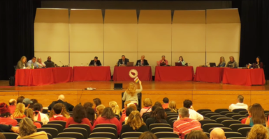 Another speaker, who identified himself as a teacher, suggested a scenario at a local carnival in which a student asks him whether “someone can have two moms.”