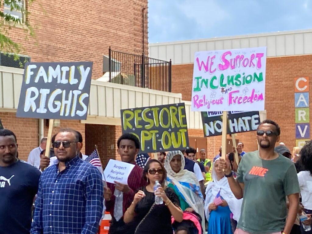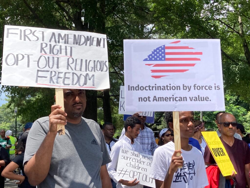 “We have the religious right to raise our kids based on the Bible,” said Soloman Hailemariam, a father who attended the rally with his wife and four children who are students in Montgomery County schools.